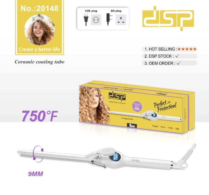 Le Fer à Boucler DSP 9mm possède un design élégant et ergonomique qui assure une prise en main confortable.