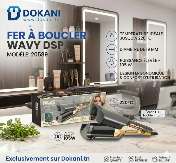 Le Fer à Boucler Wavy DSP est l’allié parfait pour créer des coiffures modernes et élégantes en toute simplicité. Que ce soit pour un look quotidien ou une occasion spéciale, il vous garantit un résultat rapide et professionnel ✨