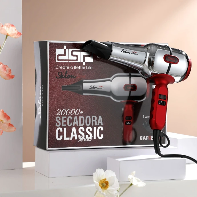 💇♀️✨ Sèche-Cheveux Professionnel DSP – 1600W – Argent et Rouge