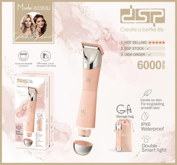 🌸 Épilateur 2en1 Rechargeable DSP Étanche – 6000 RPM – Rose 🌸