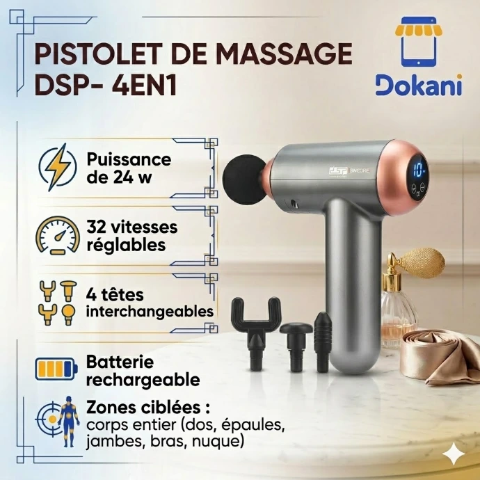 🔥 Pistolet de Massage DSP Professionnel 4EN1 – 32 Vitesses – 24W 💪✨
