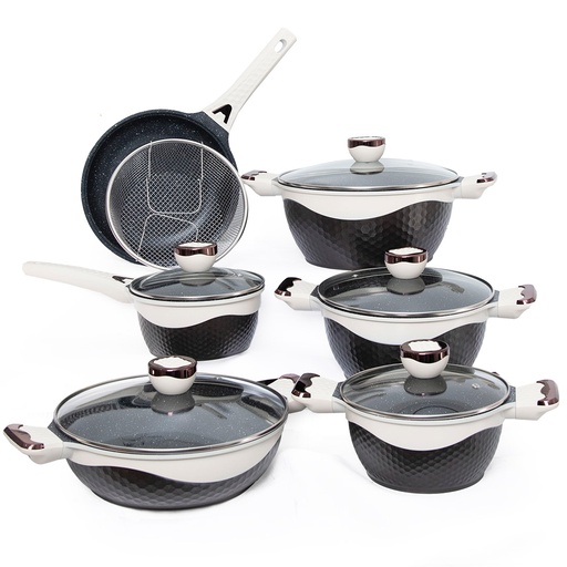 Batterie de Cuisine 17 Pièces Granit Hascevher Noir