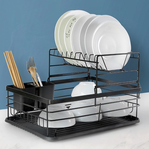 Egouttoir à Vaisselle a 2 Niveaux En Acier Noir