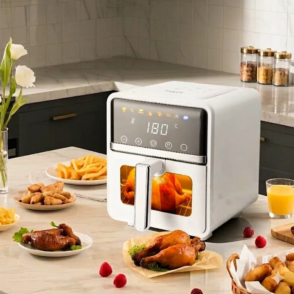 Fini les odeurs de friture et les corvées de nettoyage. Son design élégant avec fenêtre visuelle et écran tactile coloré apporte une touche de haute technologie à votre cuisine, tout en vous offrant une polyvalence totale, du poulet rôti aux gâteaux moelleux.