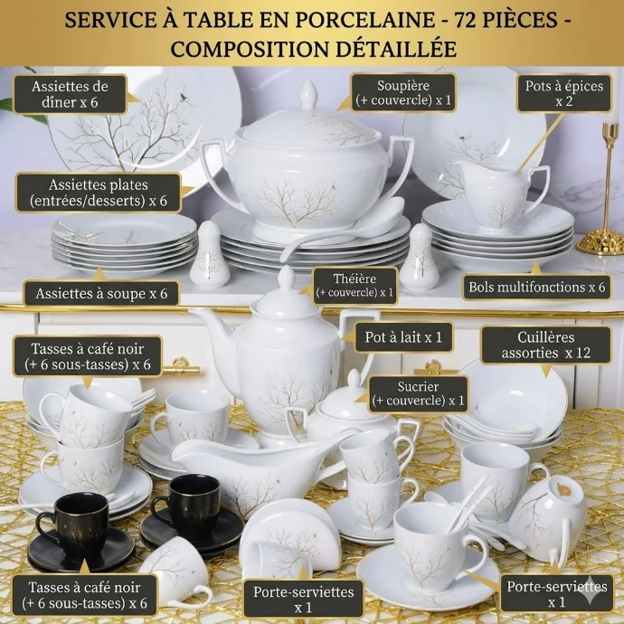 🍽️ 2. Composition Magistrale de 72 Pièces