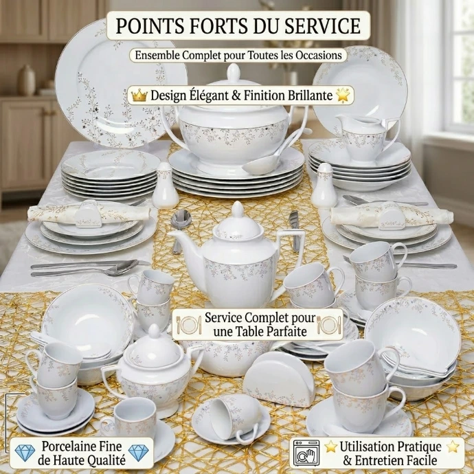 🍽️ Service à Table Enzo 72 Pièces en Porcelaine Fine – Raffinement & Prestige