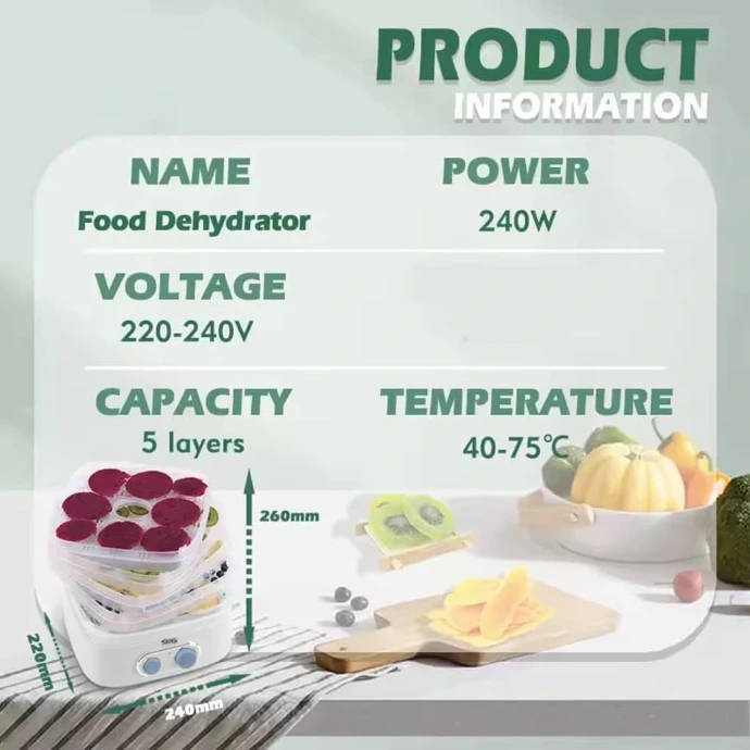 🥭 Déshydrateur Alimentaire DSP à 5 Étages – 240W – Température réglable 40–75°C