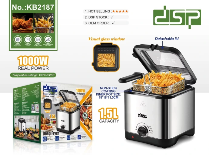 Découvrez la friteuse électrique DSP 1,5L – 1000W, conçue pour vous offrir une cuisson homogène, savoureuse et sécurisée. Grâce à sa puissance et à son design pratique, elle deviendra vite indispensable dans votre cuisine 🏡✨