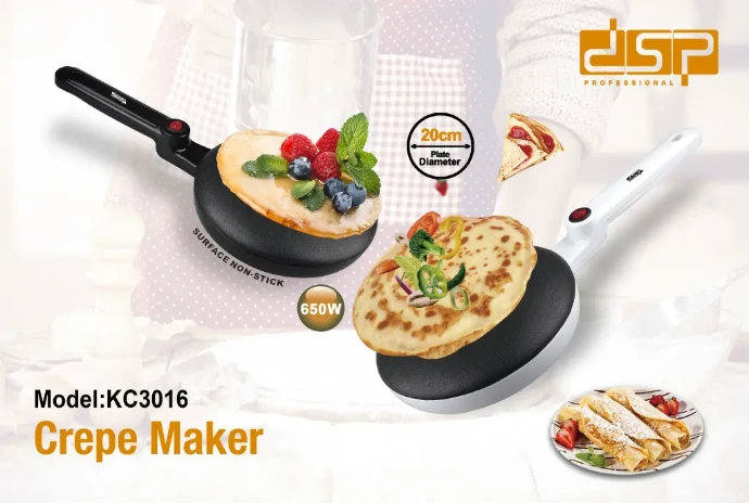 Offrez-vous une pause gourmande à tout moment avec la Crépière Électrique DSP 20 cm – 650 W en noir — l’appareil idéal pour réaliser crêpes légères, pancakes dorés ou galettes moelleuses directement dans votre cuisine. Compacte, puissante et facile à utiliser, cette crépière transforme chaque petit-déjeuner, goûter ou dessert en un moment délicieux.