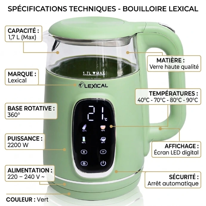 📋 Caractéristiques techniques – Bouilloire Lexical