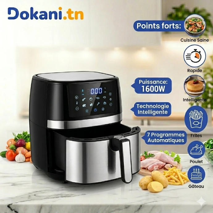 Son écran tactile intelligent offre une navigation fluide et intuitive. Avec ses 7 programmes automatiques, il s’adapte facilement à vos recettes préférées : frites, poulet, viande, poisson, légumes et bien plus encore. Il vous suffit de sélectionner le mode souhaité pour obtenir un résultat optimal, sans réglages complexes. 👆✨