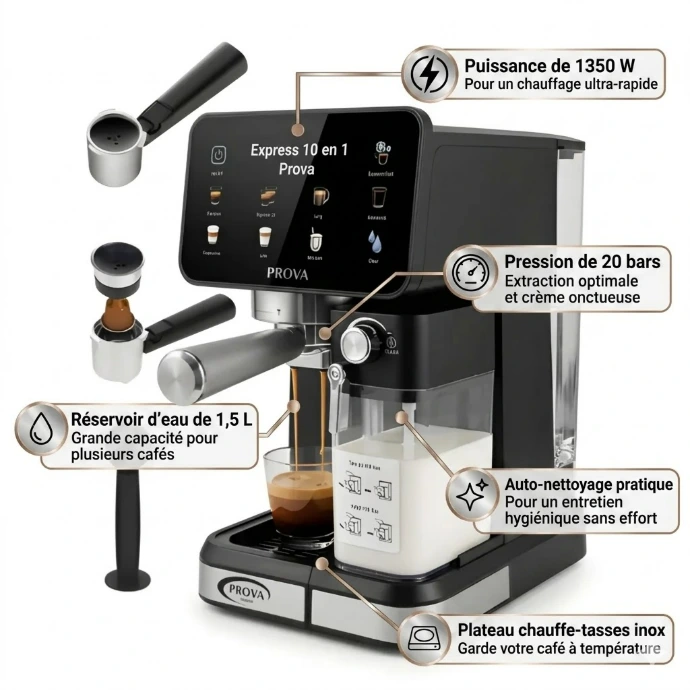 💡 Pourquoi choisir la Machine à Café Express 10 en 1 Prova ?