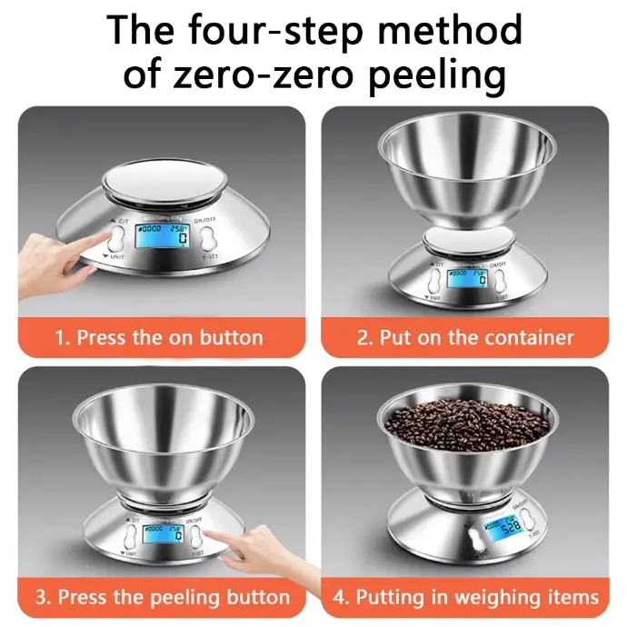 - Bol amovible en acier inoxydable : peut servir à mélanger, peser ou verser directement vos ingrédients 🧂