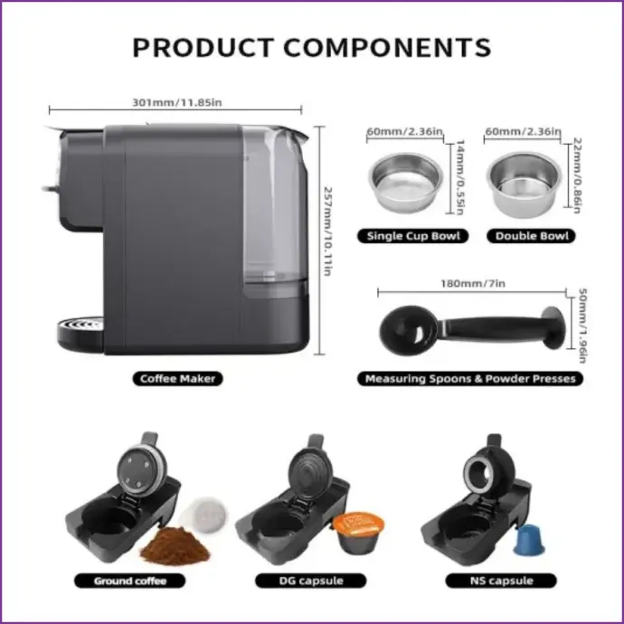 - ☕ 4 en 1 : capsules Dolce Gusto, capsules Nespresso, café moulu, dosettes