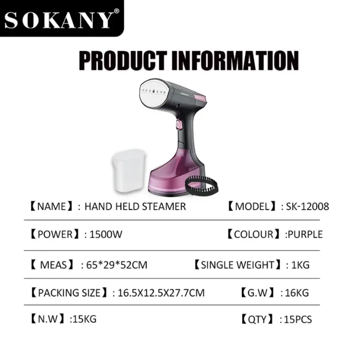 🌸 Conception ergonomique et moderne – léger, compact et facile à manipuler, le défroisseur Sokany s’adapte parfaitement à une utilisation à la maison comme en voyage ✈️🧳.
