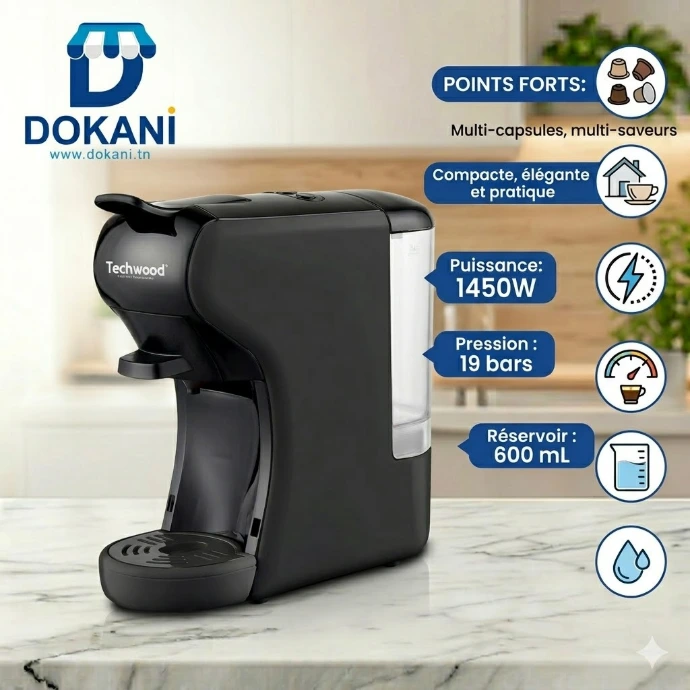 ☕🖤 Machine Expresso Multicapsules Techwood TCA-196N – Élégance Noire & Café Sur Mesure ! 🌟