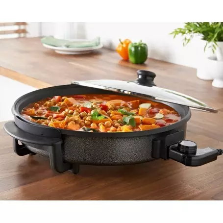📏 2. Diamètre Généreux de 34 cm : Pour Toutes Vos Envies ! Son diamètre de cuisson de 34 cm est idéal pour préparer des pizzas de taille familiale 🍕, de grandes galettes, ou plusieurs crêpes simultanément. Finies les petites portions, place aux repas conviviaux où chacun se régale sans attendre ! C'est la taille parfaite pour toutes vos créations culinaires. 👨👩👧👦