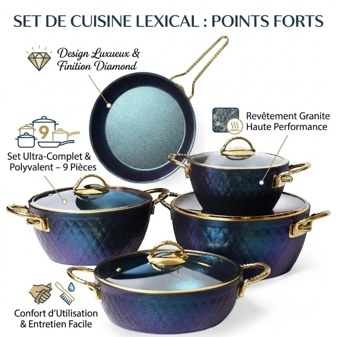 🍳 Batterie De Cuisine Vivaldi – 9 Pièces en Granite – Design Diamond & Performance Culinaire