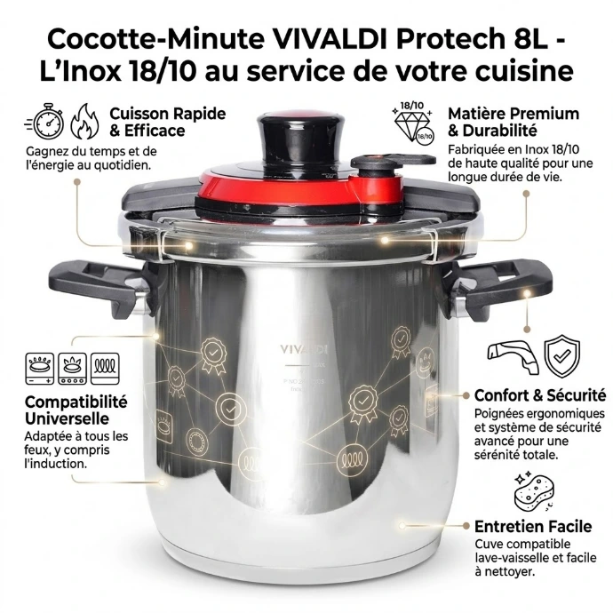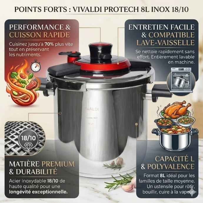 ✨ Cocotte-Minute Vivaldi Protech 8L en Inox 18/10 | Cuisine Rapide, Saine & Savoureuse ✨