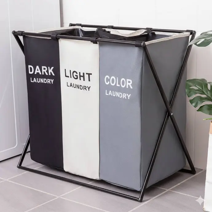 🌟 L'Organisation Intelligente à Portée de Main Imaginez ne plus jamais avoir à trier votre linge juste avant la machine ! Grâce à ses trois compartiments clairement étiquetés (DARK, LIGHT, COLOR), notre panier vous permet de séparer vos vêtements dès qu'ils sont sales. Fini les décolorations accidentelles et les heures passées à trier chaussettes et t-shirts ! C'est un gain de temps précieux et la garantie d'un linge impeccable à chaque lavage. 🚀